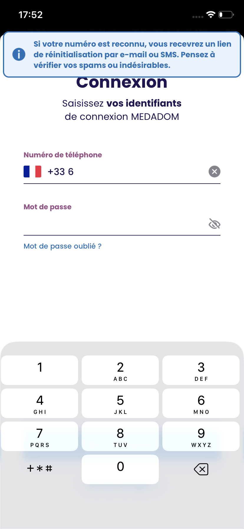 Par le biais de votre numéro de téléphone, les étapes à franchir vous seront indiquées afin de créer un nouveau mot de passe.